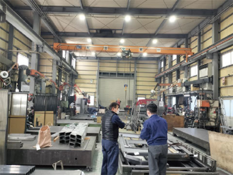 流れ作業ではなく、一人の職人が図面の読み解きから仮組み、本溶接まで責任を持って担当できる高い技術力(多能工化)を持っています。
